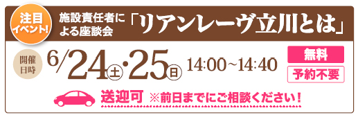 6/24(土)・25(日)【 サービス付き高齢者向け住宅 リアンレーヴ立川】 座談会開催のお知らせ