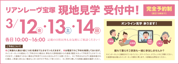 3/12(金)・13(土)・14(日)「リアンレーヴ宝塚」ご見学受付開始のお知らせ